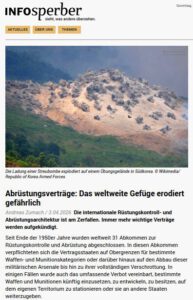 Ausgelöst wurde diese Erosion zunächst vor allem durch die Aufkündigung von Verträgen durch die USA, der stärksten Militärmacht der Welt. Russland hat diese Kündigungen zum Teil nachvollzogen.