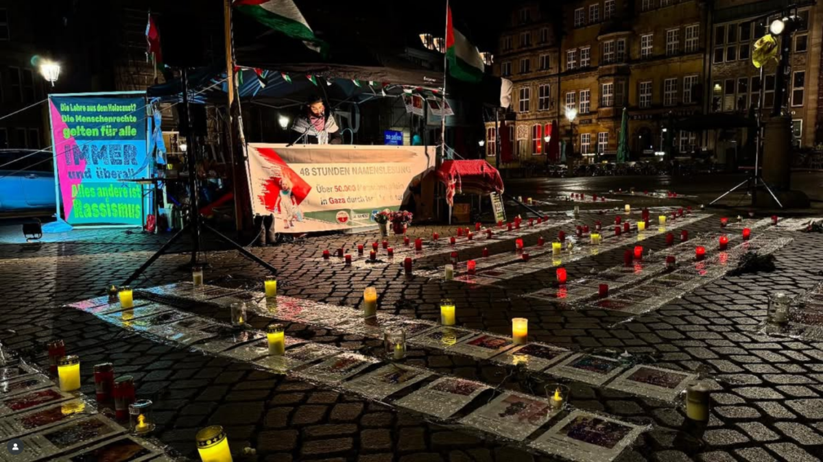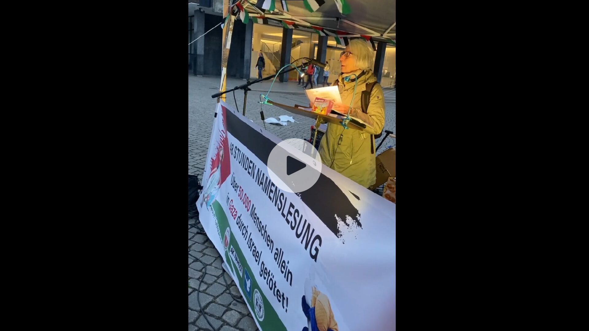 Von Donnerstag, den 25.9. um 12.00 Uhr bis Samstag, den 27.9. um 12.00 Uhr haben Aktive der Solidaritätsbewegung mit dem Palästinensischen Volk 48 Stunden lang die Namen der in Gaza getöteten Palästinenserinnen und Palästinenser vorgelesen.