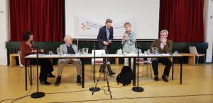 Prof. em. Dr. Eva Senghaas-Knobloch moderierte die Veranstaltung und stellte die Referenten und die Referentin vor.
