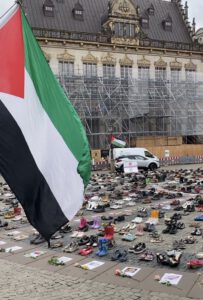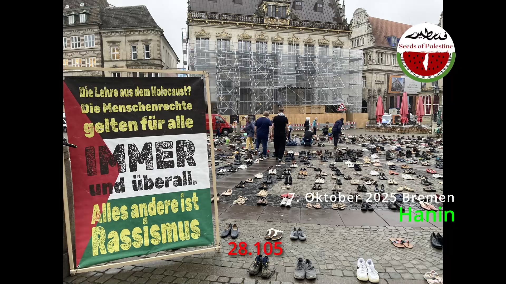 Anders als Politik und Medien behaupten, wird bei Palästina-solidarischen Aktionen immer wieder das Völkerrecht zitiert, das den Palästinensern das Recht auf bewaffneten Widerstand gibt, unter der Bedingung, ziviles Leben zu schützen. Bei der Aktion „Schuhe der Stille“ wurde an alle zivilen Opfer erinnert. Um sie trauern wir.