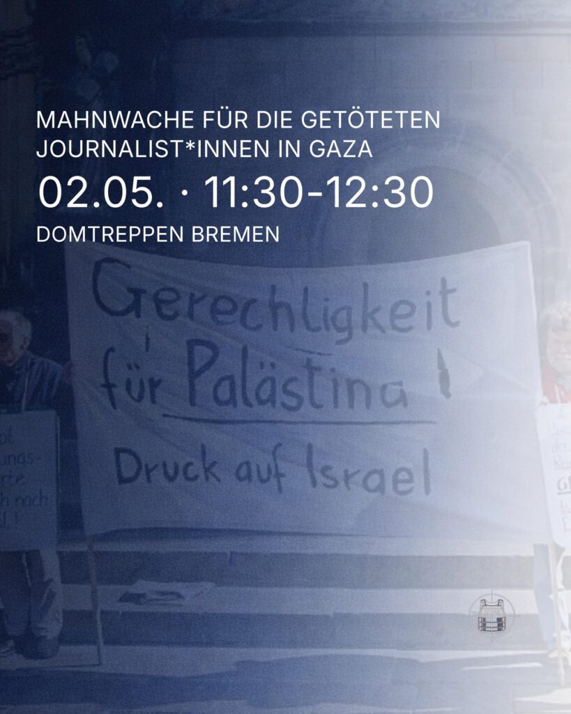 Seit dem 7. Oktober 2024 organisieren die Palästinensische Gemeinde und die Deutsch-Palästinensische Gesellschaft in Bremen die Demonstrationen und Kundgebungen für Gaza. Free Gaza! Free Palestine! Für den 17. Februar hatte Serhat Sisik als Hauptredner zugesagt. Er ist als Journalist und Influencer vor allem unter den Jüngeren bekannt. Unter dem aka (also known as) „Agressionen 1“ hat er auf Tiktok mehrere 100-Tausend Follower. Es waren 3000 Menschen gekommen, die ihre Schilder, Spruchbänder trugen und lautstark ihre Trauer und ihre Wut über die Politik Israels und über das Schweigen der westlichen Welt bekundeten.