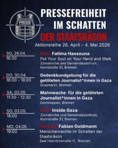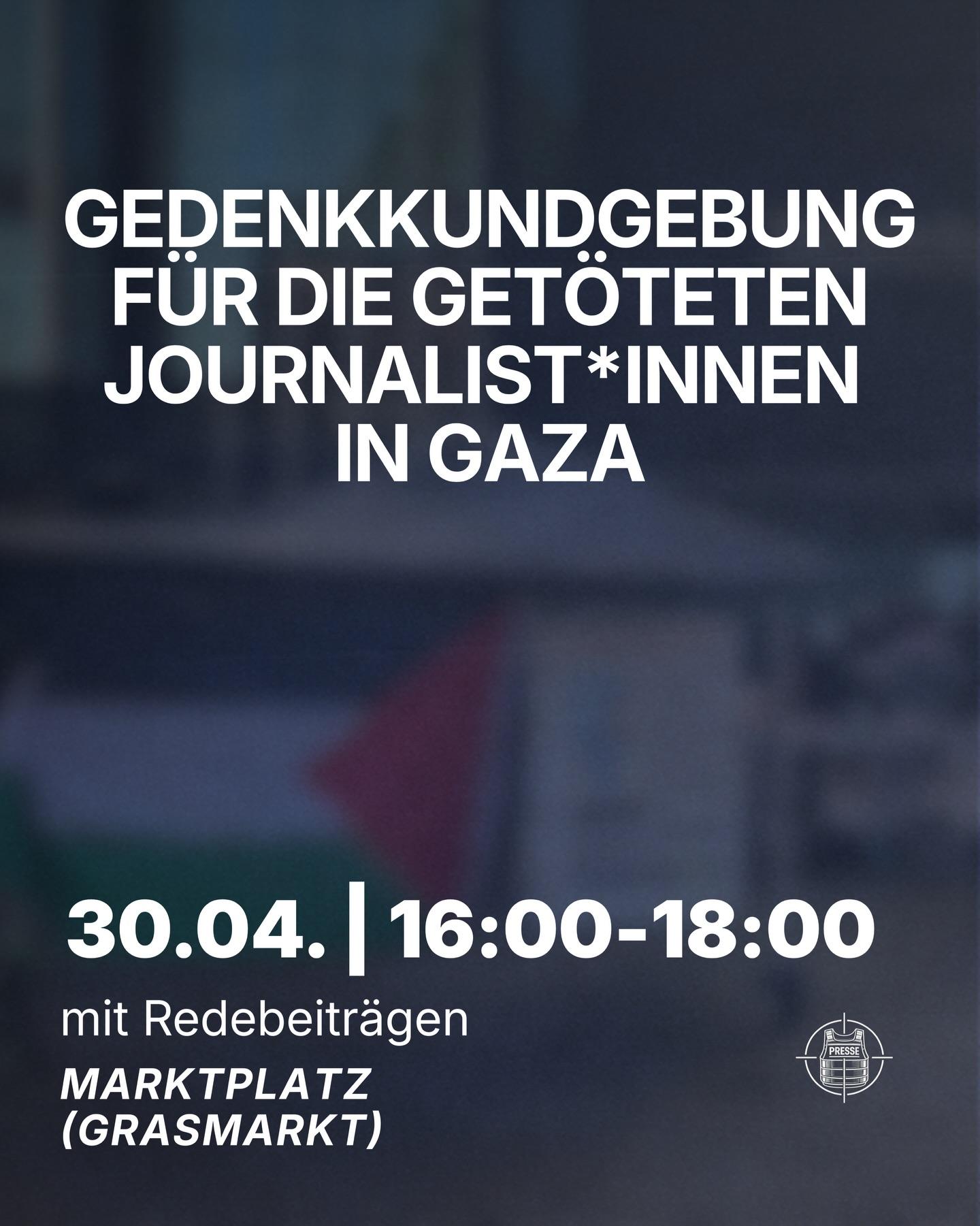 Gedenkkundgebung für die getöteten Journalist*innen in Gaza Grasmarkt, Bremen