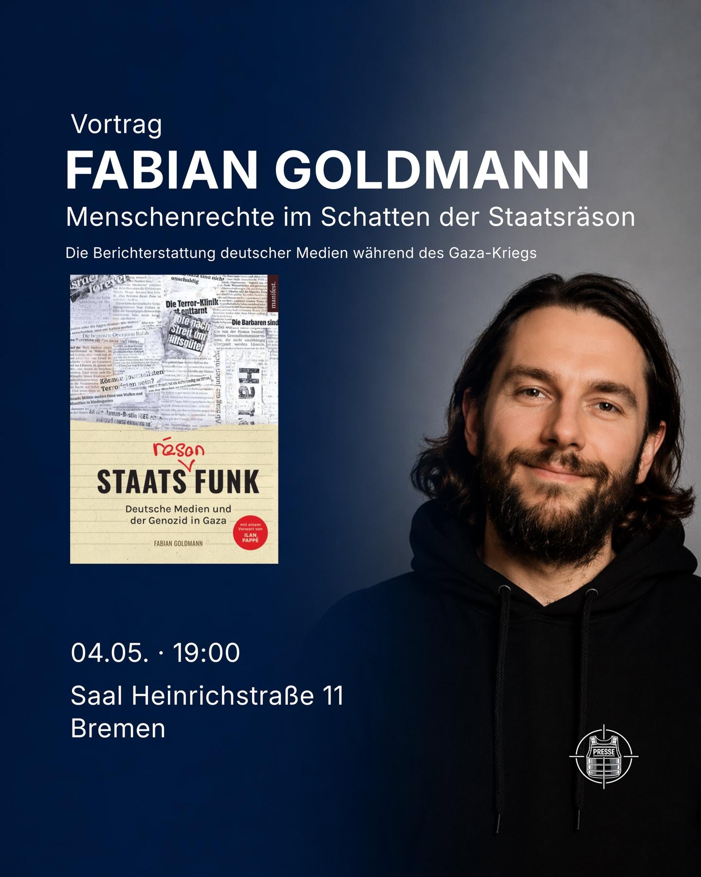 Der Journalist und Medienkritiker Fabian Goldmann hat die Berichterstattung deutscher Medien über Israel/Gaza in einer umfangreichen Studie analysiert. Er dokumentiert, wann und wo Medien ihre Sorgfaltspflicht vernachlässigt und einseitig berichtet haben, wo etwas verharmlost, gerechtfertigt oder sogar verschwiegen wurde. Seine Analyse belegt das Versagen eines Großteils der deutschen Medien im Schatten der Staatsräson, die immer wieder zu Voreingenommenheit und Selbstzensur führt. Dadurch entsteht eine Komplizenschaft mit der israelischen Regierung, weil die genozidale Kriegsführung nicht klar verurteilt wird und so die Menschenrechte missachtet werden.