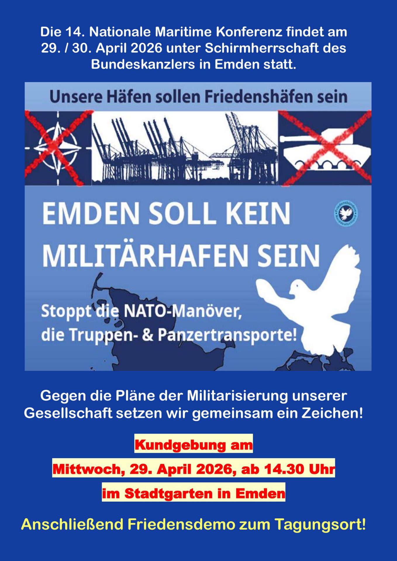 Weltweit steigt die Zahl bewaffneter Konflikte. Seit dem Zweiten Weltkrieg gab es nie so viele Länder, die in kriegerische Auseinandersetzungen verwickelt waren, wie in den letzten Jahren. Die Militärausgaben weltweit sind so hoch wie nie zuvor. Für das Töten und Sterben wurden zuletzt 2,72 Billionen Dollar in einem Jahr ausgegeben. Ein Bruchteil dieser Summe würde ausreichen, um den Hunger in der Welt zu beseitigen. Alle 4 Sekunden stirbt ein Mensch an Hunger, 673 Millionen haben nicht genug zu essen. Kriege zerstören die Lebensgrundlagen der Menschen, beschleunigen die Umweltzerstörung. Wer Mensch und Natur retten will, muss sich zuallererst für Frieden einsetzen. Wer es ernst meint mit Menschenrecht und Menschenwürde, muss alle Kriege verurteilen. Weiterlesen… „Ostermarsch? Wichtiger denn je!“